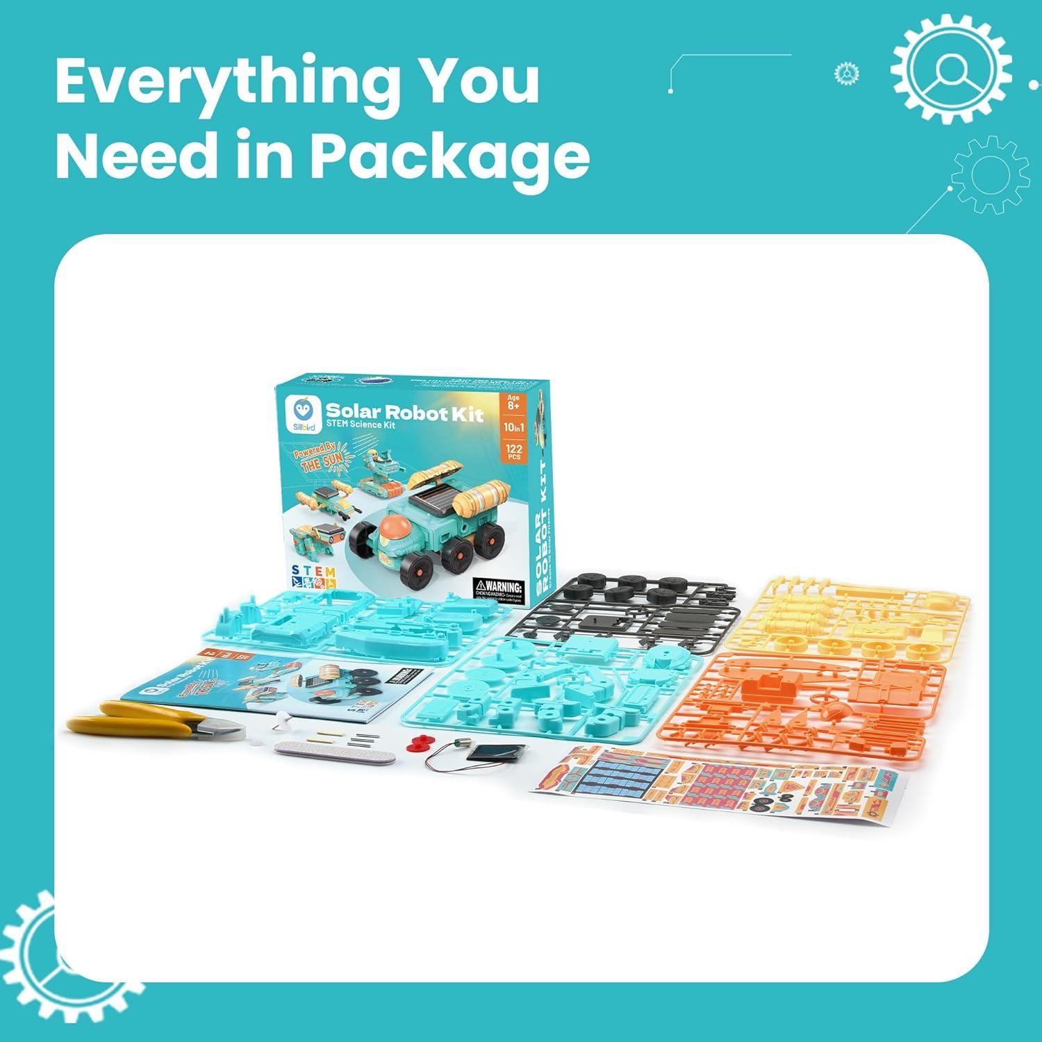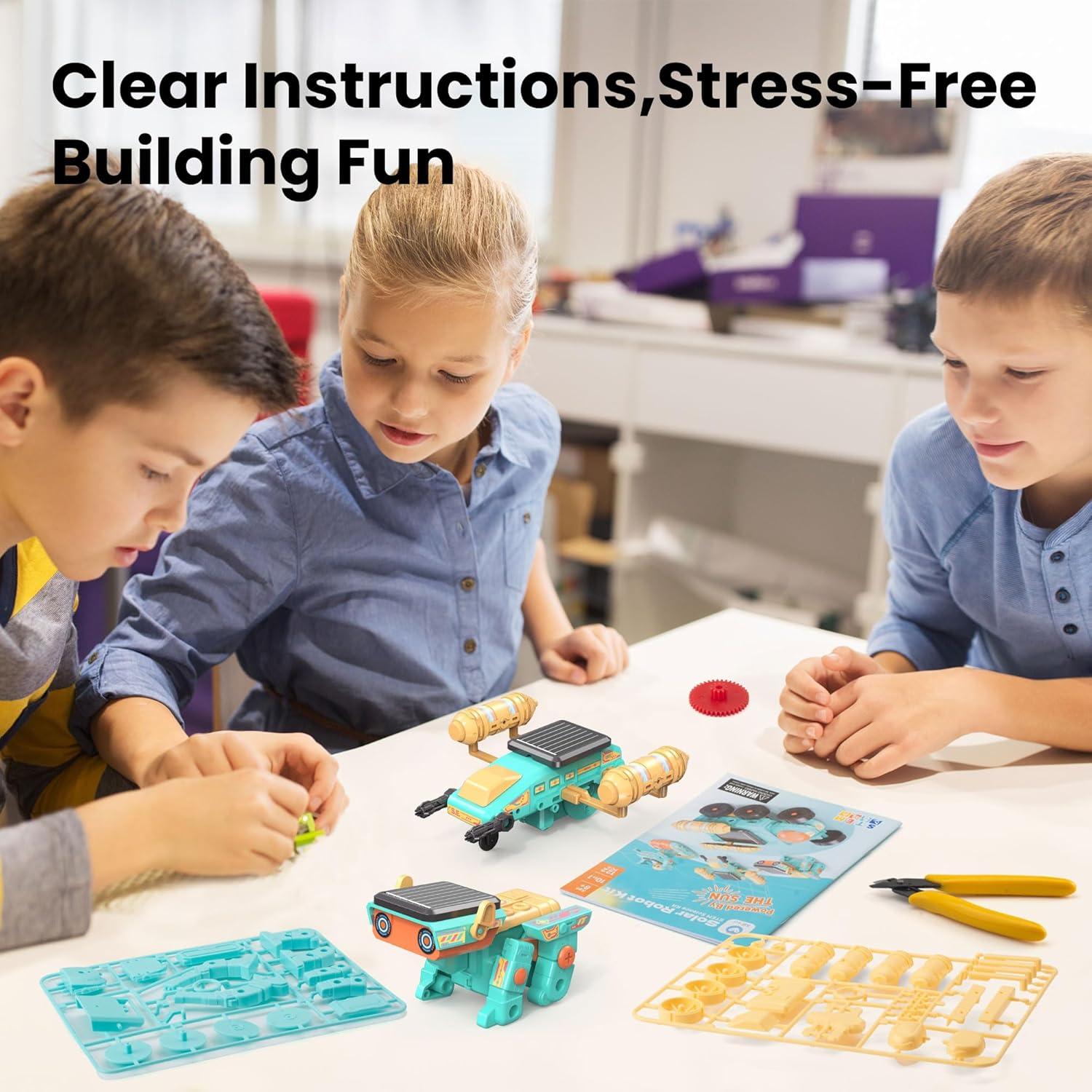 🤖 10-in-1 Robots to Build: This 112-piece solar robot kit lets kids create 10 unique models, including cars, robots, and space explorers. Each design features progressive difficulty levels—from simple to advanced, or DIY build own robot